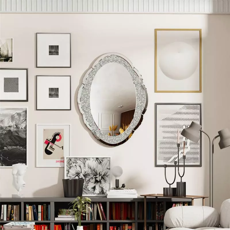 Bring a touch of elegance and sparkle to your living space with this stunning Cloud-Shaped Crushed Diamond Wall Mirror. Crafted with 5mm thick, mercury silver glass and accented with crushed diamonds, this mirror is both a functional piece and a statement of art. Its unique, cloud-inspired shape and shimmering diamond elements make it the perfect centerpiece for any room, whether it’s the living room, bedroom, hallway, or dining area. This mirror beautifully captures and reflects light, adding depth and a sense of openness to your space.